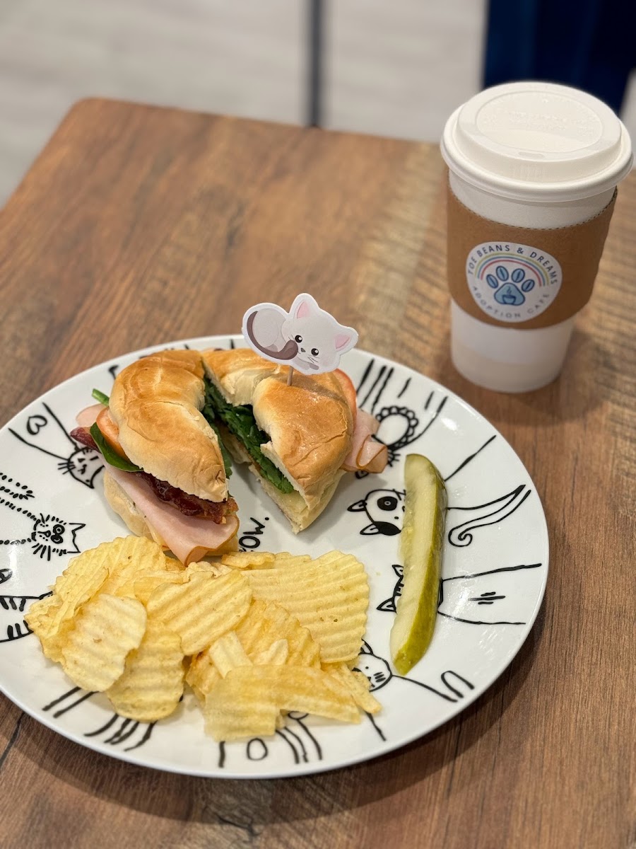 The cafe's menu, though simple, is crafted with care and designed to complement the enchanting environment. Start your visit with a Toasted Bagel with Your Choice of Spread for just $7.69, where each bite reveals the perfect balance of crunch and creaminess. Alternatively, opt for a Build Your Own Sandwich Bagel or Purrfect Panini for $15.01, and customize it to your liking, accompanied by chips and a tangy pickle that adds a delightful crunch.
